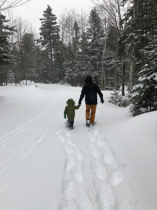 📸 Dan and his son snowshoe a snowmobile trail.